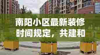 南阳小区装修时间的最新规定,旨在保障居民生活质量和社区环境和谐,作为业主和施工单位,我们应积极响应并遵守相关规定,共同打造和谐宜居的居住环境,物业也应加强监管力度,确保规定的执行,让我们共同努力,为南阳小区创造一个美好、和谐的居住环境。