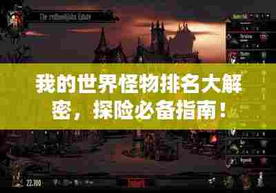 就是《我的世界》中的怪物排名,不同的怪物拥有不同的特点和攻击方式,玩家需要根据实际情况选择合适的应对策略,在探险过程中,保持警惕和冷静是非常重要的,希望这份指南能够帮助您在《我的世界》中更好地应对各种挑战。
