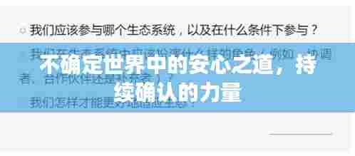 我们生活在一个充满不确定性的时代,无论是个人生活还是职业发展,我们时常面临着各种未知和挑战,在这样的背景下,人们常常感到焦虑、迷茫,为了应对这种不确定性,许多人选择了一种行为方式——不断的确认。