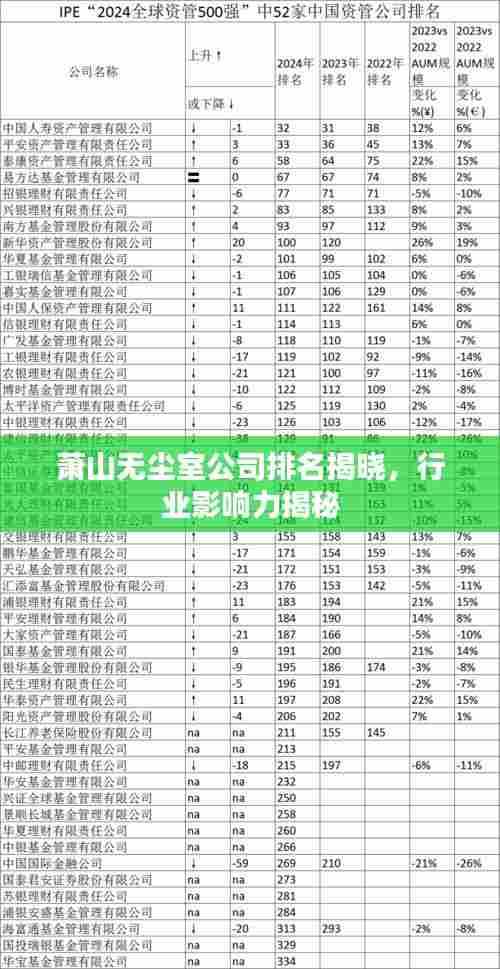 随着科技和工业的飞速发展,无尘室技术在许多领域得到广泛应用,作为这一技术的重要应用领域,萧山地区的无尘室产业也日渐繁荣,本文将探讨萧山无尘室公司的排名及其行业影响力,揭示这些企业在推动地区乃至全国经济发展中所扮演的重要角色。