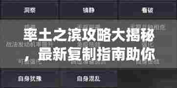 《率土之滨》作为一款策略性极强的游戏,深受众多玩家的喜爱,在游戏中,玩家需要运用智慧与策略,不断发展自己的势力,最终一统江山,本文将为大家分享一些最新的复制攻略,帮助大家在游戏中取得更好的成绩。