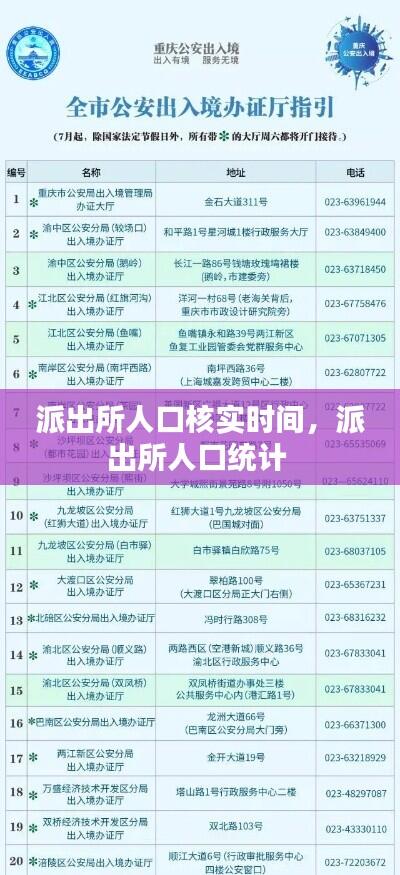 派出所是公安机关的基层组织,负责维护辖区内的治安秩序,服务群众。其中,人口核实工作是派出所的一项重要职责。人口核实时间,即派出所对辖区居民进行人口信息核实的时间安排,对于确保人口数据的准确性和及时性具有重要意义。