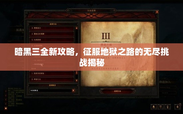 作为一款备受瞩目的动作角色扮演游戏,暗黑破坏神III(暗黑三)以其丰富的剧情、独特的游戏机制和精美的画面吸引了无数玩家,本文将为你带来关于暗黑三的最新攻略,助你轻松征服地狱之路的无尽挑战。