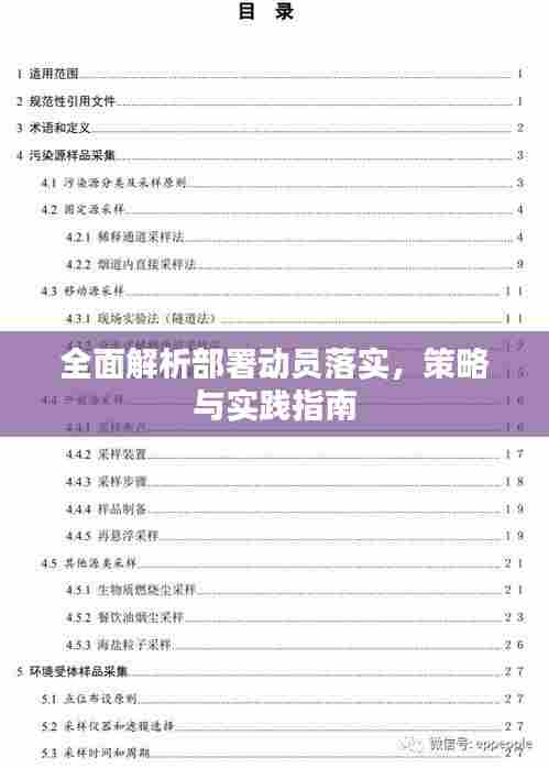 在当今社会,无论是企业、组织还是政府,都需要面对各种挑战和任务,为了应对这些挑战,确保任务的顺利完成,我们需要高度重视部署动员落实工作,本文将从部署动员落实的重要性、具体步骤、关键环节和注意事项等方面进行全面解析。