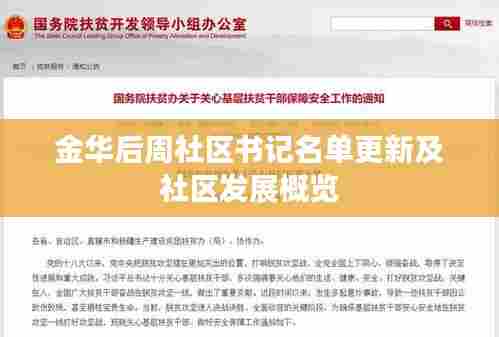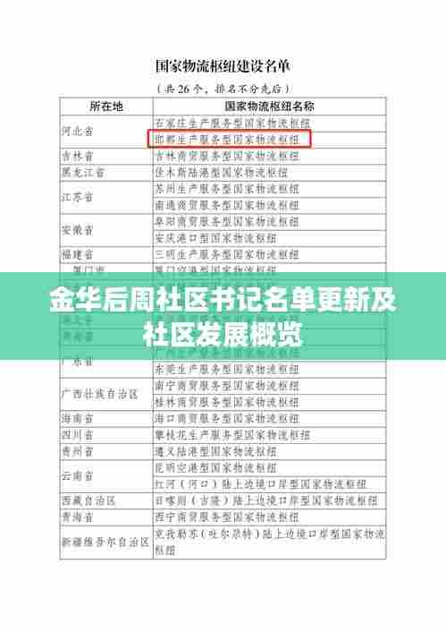 随着社会的不断发展,社区作为基层社会治理的重要组成部分,其领导层的变动及更新一直备受关注,本文将重点关注金华后周社区的最新发展情况,特别是社区书记名单的最新信息。