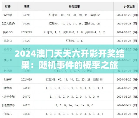 在探讨2024澳门天天六开彩开奖结果的研究性说明文中,我们将通过对文献资料的详细解读,揭示随机事件的概率之旅。本文的目的并非解释其赌博或彩票含义,而是以教育和学术的角度,分析随机事件在概率论中的应用和计算方法。我们将探讨概率论的历史、定义、基础理念以及实际案例,为读者提供一个全面了解随机事件的概率之旅的机会。