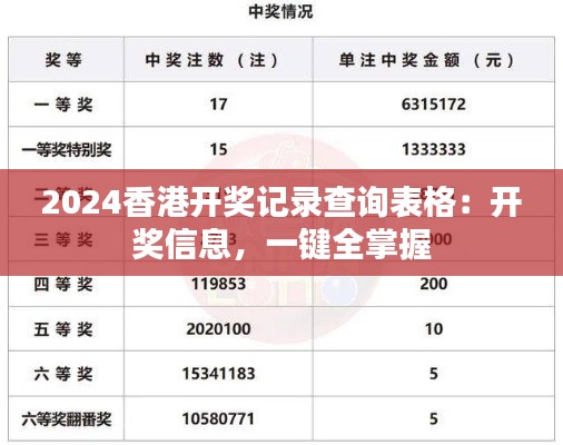 在研究某些特定的记录数据时,香港的记录资料常常被作为重要的参考对象。本文旨在为您提供一份详尽的研究性说明文,内容涉及“2024香港开奖记录查询表格:开奖信息,一键全掌握”这一主题,以便您能够更全面地了解这一领域的信息。请注意,“开奖”在此文中指的是非赌博性质的、如抽奖等活动中的获奖记录。