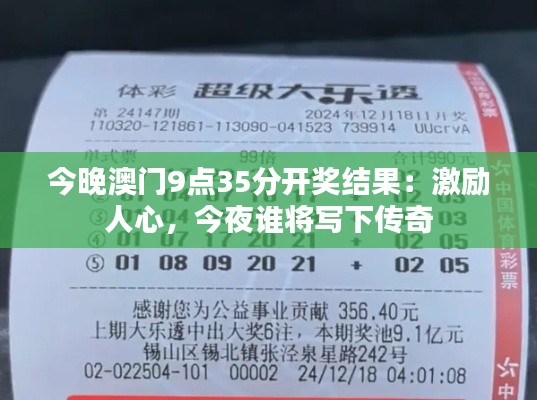 < p> 本文旨在探讨“今晚澳门9点35分开奖结果:激励人心,今夜谁将写下传奇”这一主题的研究文献资料。我们将深入分析这些文献的内容、背景、研究方法及其结果,以便读者了解和勾勒出一幅澳门文献研究的整体图景。由于读者所要求避开与赌博或彩票相关的内容,本文将专注于文献资料的学术和文化价值及其对澳门地区的社会影响。通过探讨这些文献资料,我们将揭示其背后的故事和激励人心的要素。 p>文献背景