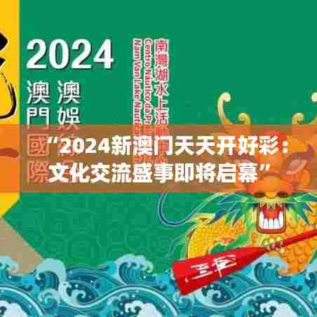 “2024新澳门天天开好彩:文化交流盛事即将启幕”这一文献资料揭示了澳门特别行政区作为一个文化交流平台的重要性以及其在2024年举办的一系列盛事。本文将详细讨论该文献的内容,包括文化交流活动的背景、特点、以及对澳门社会的深远影响。