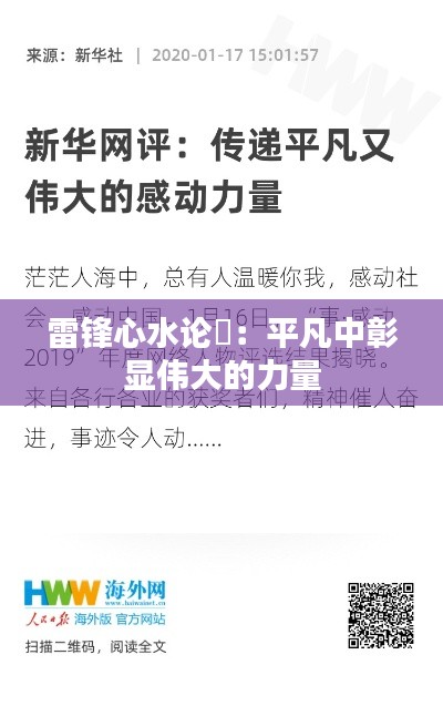 最终,文献着重强调的是雷锋这一普通人中的楷模,是以他的实际行动书写的奉献精神的传承。雷锋心水论枟所弘扬的,不仅仅是一个英雄形象的塑造,更在于我们如何将这种精神融入到日常生活中。通过不同时代、不同层次、不同领域的实践,我们可以感受到雷锋在平凡中彰显的伟大力量,并将其薪火相传、永续燃烧。