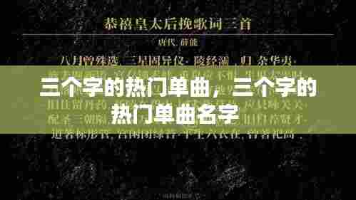 在音乐界,有些歌曲因其独特的魅力和朗朗上口的旋律而迅速走红,其中不乏以“三个字”为名的热门单曲。这些歌曲往往简洁有力,易于传唱,成为人们心中的经典。本文将探讨几个以“三个字”为名的热门单曲,分析它们为何能够成为流行音乐的佼佼者。