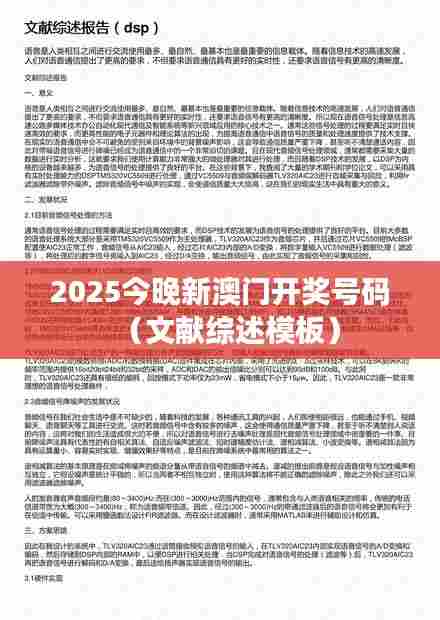 “2025今晚新澳门开奖号码”并非指代任何形式的博彩活动或游戏,而是一个虚构的概念,旨在通过文献综述的模板框架,展示如何系统地整理和论述某一领域的研究进展。在本文中,我们将细致探讨文献综述的编写方法、结构布局以及关键要素,旨在为读者提供一个清晰的文献综述撰写指南。
