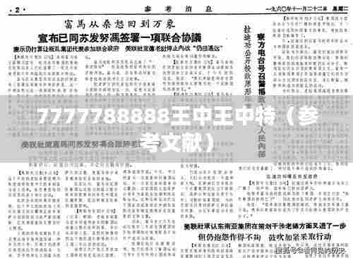 “7777788888王中王中特(参考文献)”并非指代一个具体的文献,而是一种特殊的谐音或代号,用于指示一部文献资料的重要性和地位。在学术研究领域,这种编码方式并不常见,但足以激发探究的兴趣,引领学者深入研究。此编码可能是非正式文献交换时的一个标记,或用作保密标示,旨在明确该文献的研究价值与影响力。由于没有具体的文献目录号或标准检索编号,对于“7777788888王中王中特”所指的特定文献,我们只能通过间接证据和背景资料进行推测和解读。现在就让我们一起探索一下,可能会涉及哪些类型的文献资料。