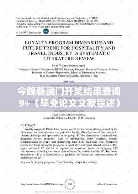 综上所述,对“今晚新澳门开奖结果查询9+”的文献综述显示,该领域的研究涵盖了从理论构建到实证研究、再到政策建议的全方位视角。这些文献为我们提供了丰富的知识资源,有助于我们更好地理解和应对快速变化的信息社会。同时也指出了该领域的核心问题和未来的研究需求,为继续深化该领域的研究提供了坚实的基础和明确的指引。
