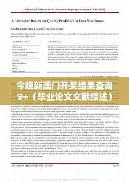 在当前学术研究领域,对“今晚新澳门开奖结果查询9+”的探讨实际上并不涉及具体的赌博或彩票活动,而是作为一种隐喻,用来指代那些需要精确数据和最新动态以指导决策的领域。在这样的背景下,文献综述成为了学者和研究者们不可或缺的工具,它详细记录了已有研究的发展历程,对于理解该领域的深层次动向和学术贡献具有重要意义。本文将概述“今晚新澳门开奖结果查询9+”相关的文献,具体内容包括各学者对该主题的研究、理论和实验方法,以及这些研究成果如何为我们提供指导和启示。