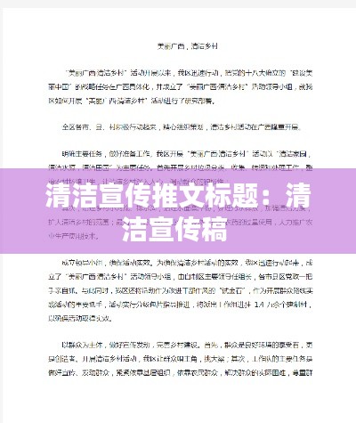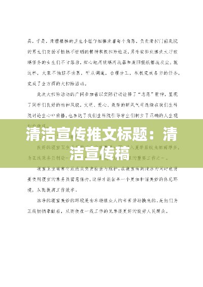 转载请注明来自中蚨科技,本文标题:《清洁宣传推文标题:清洁宣传稿 》